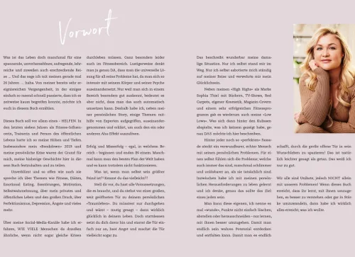 Sophia Thiel hat erreicht, wovon viele träumen: die (vermeintlich) perfekte Karriere in den sozialen Netzwerken. Mit ihrer Transformation vom pummeligen Teenager zur toughen Bodybuilderin wurde sie deutschlandweit bekannt und erfolgreich. Was niemand wusste: Innerlich litt Sophia unter ihrem eigenen Erfolg und dem Druck, ständig perfekt wirken zu müssen. Durch eine immer restriktivere Diät und extremes Training wurde aus einem anfänglich gesunden und ausgewogenen Lebensstil eine handfeste Essstörung. In diesem Buch erzählt Sophia erstmals so offen und schonungslos wie nie von den Schattenseiten ihrer Bekanntheit, von der Verantwortung, eine eigene Marke zu führen, von ihrem exzessiven Fitness-Lifestyle, privaten Dramen und unkontrollierbaren Essanfällen. Aber vor allem davon, wie sie letztlich lernen konnte, sich selbst zu akzeptieren, zu ihren Schwächen zu stehen und wieder glücklich zu sein. Zudem gibt Sophia gemeinsam mit Experten aus Medizin und Psychologie viele hilfreiche Tipps, wie jeder persönliche Krisen und Selbstzweifel überwinden und sogar stärker daraus hervorgehen kann.