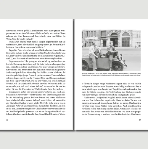 Mit viel Mut, wenig Geld und einem gebraucht erworbenen, notdürftig reparierten Hanomag Typ 2/10 gingen mein Vater und sein Studienfreund 1928 auf „Weltreise“. Weder der Jurastudent noch der angehende Agrarwissenschaftler hatten viel Fahrpraxis. Dennoch starteten sie mit dem in Hannover-Linden gebauten kleinen Hanomag, liebevoll „Kommissbrot“ genannt, von Halle/Saale aus dieses Wagnis. Schwierige Straßenverhältnisse, Pannen, mühsame Ersatzteilbeschaffung und Beinah-Unfälle waren häufige Begleiter auf ihrer Fahrt. Dank einiger Empfehlungsschreiben der Universität wurde den beiden „Weltreisenden“ in den fremden Ländern manche Tür geöffnet. So trat der Ernstfall auch nie ein, mangels eines Bettes unter dem Auto nächtigen zu müssen. Dafür gab es genügend andere Abenteuer, vergnügliche und unangenehme, und nicht zuletzt auch einige amouröse. Leider nahm die Reise nach knapp fünf Wochen ein jähes Ende. Das treue Kommissbrot hat Halle nie wiedergesehen. Sabine Jacobs, Jahrgang 1942, ist die Tochter des „Ungarn-Fahrers“ Hans-Joachim Suchsland. Als leidenschaftliche Autorin von Familiengeschichten lag es nahe, die Aufzeichnungen ihres Vaters von seiner „Weltreise“ zu nutzen und zu veröffentlichen. Sie geben einen amüsanten Einblick in die automobile Technik Mitte der 1920er Jahre.
