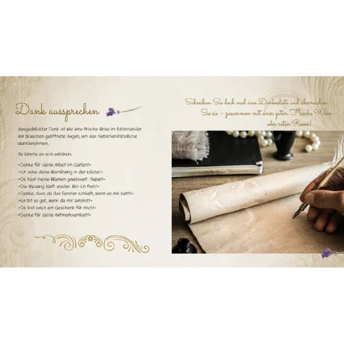 Die Botschaft des neuen Geschenkbandes zu diesem ganz besonderen Jubiläum fi ndet sich prägnant zusammengefasst im Vorwort der Autorin: »50 Jahre miteinander Freude erlebt. 50 Jahre im Schmerz einander gestützt. 50 Jahre nach Schwierigkeiten wieder zur Versöhnung gefunden. « In diesem Sinne werfen die Texte des exquisit gestalteten Buches einen warmherzigen Blick auf Vergangenheit, Gegenwart und Zukunft der Goldhochzeiter. Denn: »Der bisher mit euch ging, wird euch niemals verlassen! «